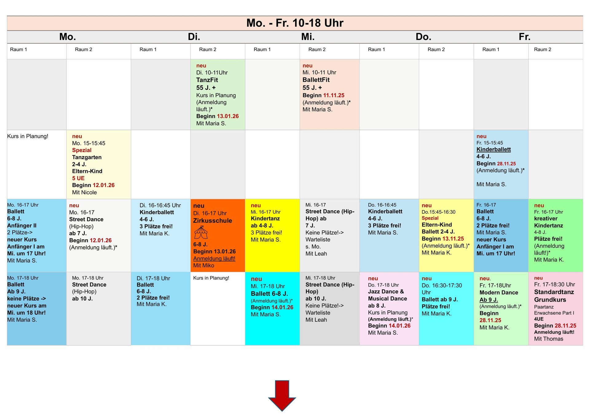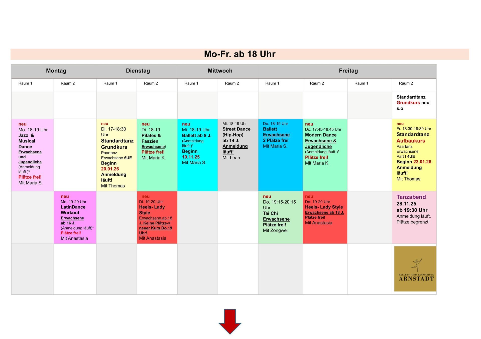 Eltern-Kind-Tanz, Kindertanz, Kinderballett, Ballett, BallettFit, Jazz Dance, Modern Dance, Street Dance, Hip Hop, Heels- Lady Style Dance, Tai-Chi uvm.
